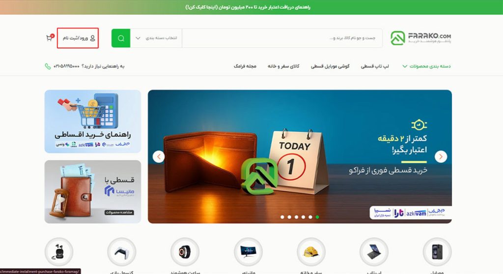 - برای شروع ابتدا روی گزینه ورود/ثبتنام کلیک کنید و اگر حساب کاربری ندارید، نسبت به ساخت آن اقدام کنید.
