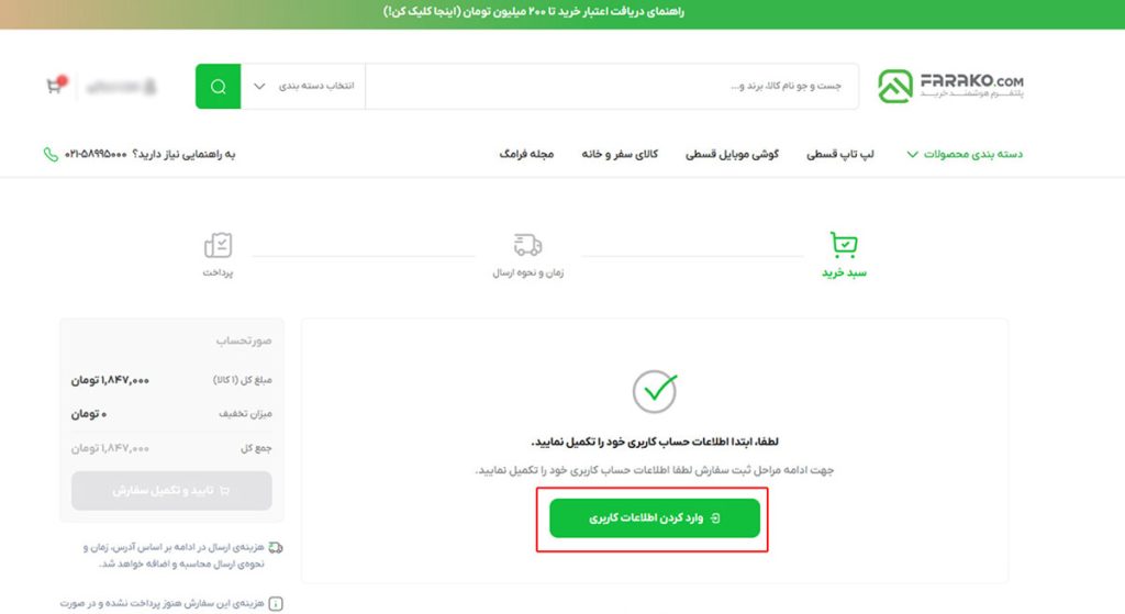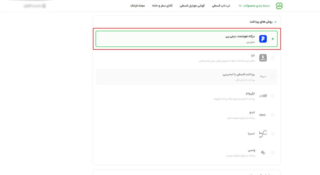 راهنمای تصویری خرید اقساطی از فراکو با درگاه دیجی پی