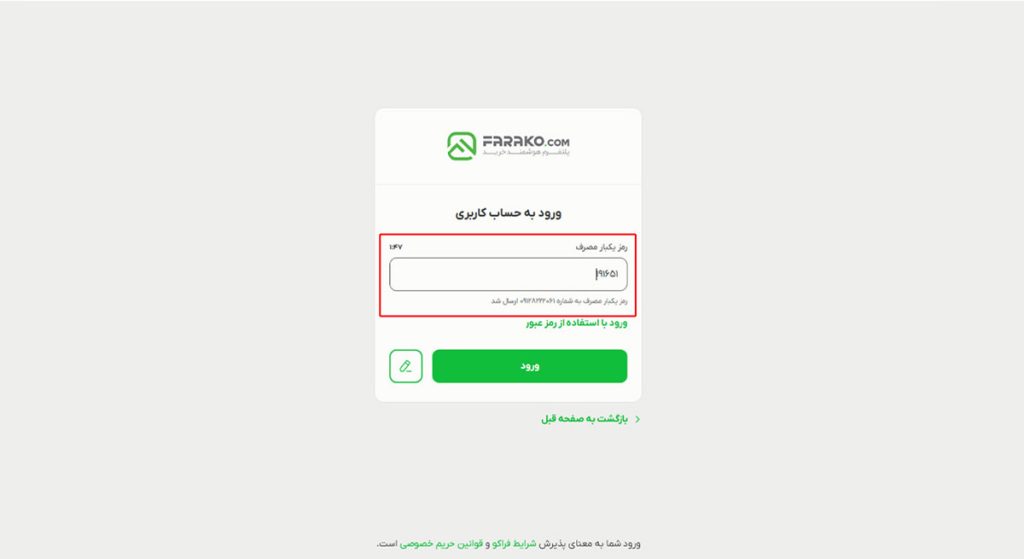 3. کد ارسال شده به تلفن همراه خود را وارد کنید.