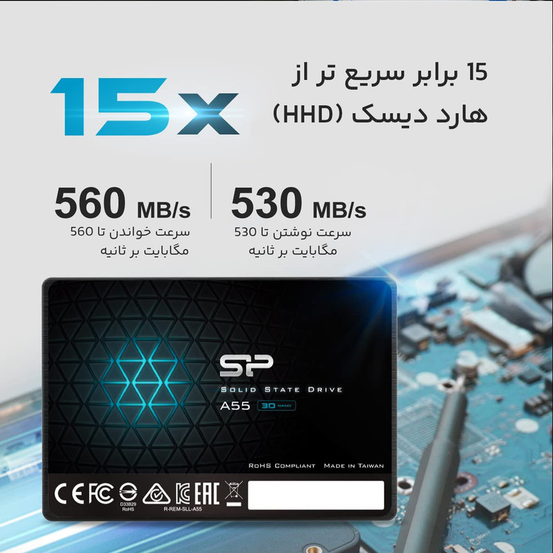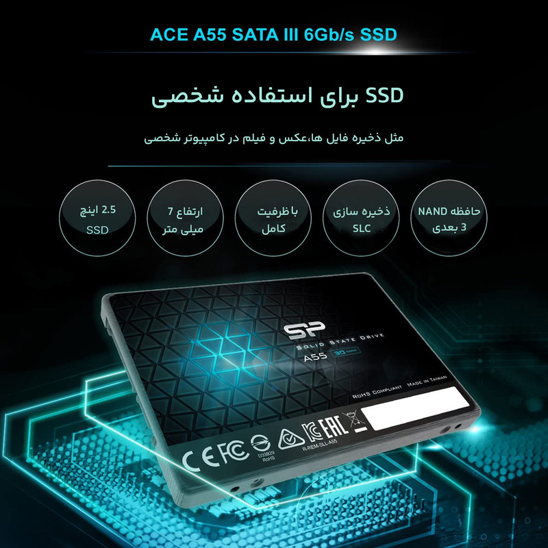 حافظهی SSD «سیلیکونپاور» مدل «Ace A55» از طریق رابط SATA3.0 به کامپیوتر متصل میشود. میزان ظرفیت این محصول برابر با 128 گیگابایت است که مقدار مناسبی برای کاربرانی است که اطلاعات زیادی برای ذخیرهسازی ندارند یا نمیخواهند هزینهی زیادی را برای داشتن یک حافظهی SSD متقبل شوند. سرعت خواندن در این محصول برابر با 550 مگابایت و سرعت نوشتن در آن برابر با 450 مگابایت است. اس اس دیها برای ذخیرهسازی اطلاعات از قسمت حرکتی و مکانیکی استفاده نمیکنند. این موضوع باعث میشود که بتوان اطلاعات را با سرعت بیشتری ذخیره کرد و از طرفی مقاومت محصول در برابر آسیبهایی مانند شوک، لرزش و ضربه بیشتر باشد. این محصول شرکت سیلیکون پاور در برابر ضربه، لرزش و شوک مقاوم است که این موضوع باعث پایدارماندن اطلاعات میشود. در واقع SSDها تجهیزاتی با قابلیت اتکای بسیار بالا هستند. میزان مقاومت Ace A55 در برابر شوک 1500G است. این محصول از نسل جدید چیپست 3D NAND بهره میبرد. سیلیکون پاور از برندهای معتبر در تولید تجهیزات ذخیرهسازی است که همواره محصولاتی را با کیفیت بالا و قیمت مناسب روانهی بازار میکند.