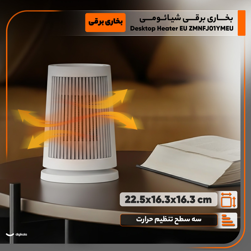 بخاری برقی شیائومی مدل Desktop Heater EU ZMNFJ01YMEU دستگاهی جمعوجور و کاربردی برای گرمکردن فضاهای کوچک خانگی و اداری است که با طراحی رومیزی، نصب و جابهجایی آن بسیار ساده انجام میشود. این محصول تنها ۱۶۰۰ گرم وزن دارد و با ابعاد ۲۲.۵ در ۱۶.۳ در ۱۶.۳ سانتیمتر میتواند بهراحتی روی میز کار، کنار لپتاپ یا در محیطهای محدود قرار گیرد بدون آنکه فضای زیادی اشغال کند. طراحی مینیمال و مدرن آن به محیط جلوهای زیبا میدهد و با بدنه مقاوم، دوام مناسبی برای استفاده روزمره ارائه میکند.